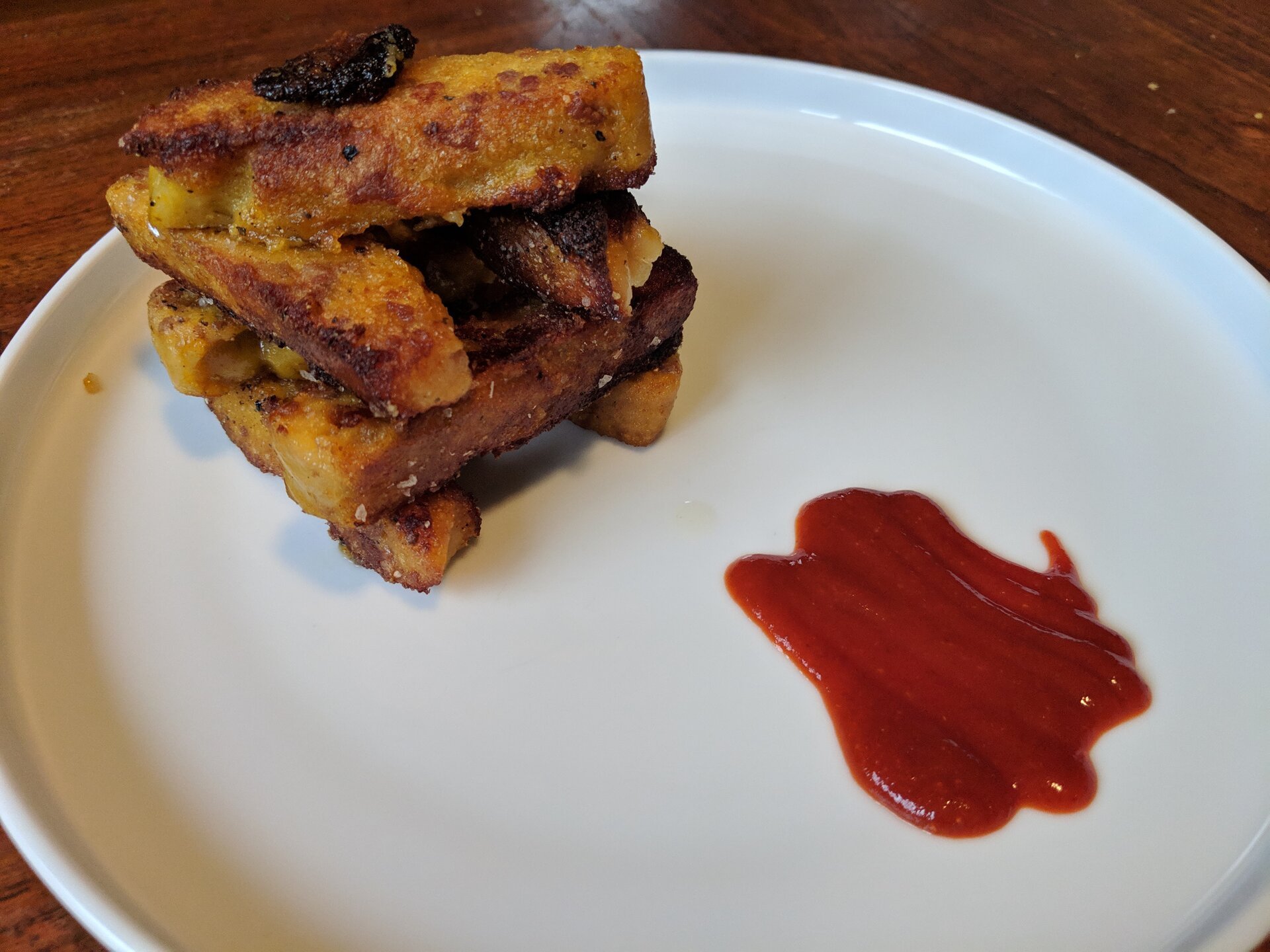 Chinese turnip cake or “Luo bo gao” is a staple of Dim Sum restaurants. However, in my family the recipe was always made with pumpkin. The consistency of these cakes is much denser and firmer and I like to eat them almost like chips with a spicy dipping sauce such as Sriracha.