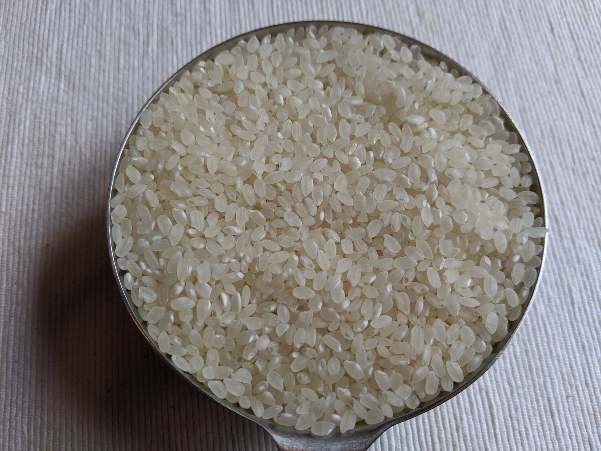 Sushi rice is prepared slightly differently than rice you eat as a side dish. First of all, sugar and vinegar will be added to make the rice slightly sticky and fragrant. Secondly, you’ll want to use a short-grain rice as pictured here.